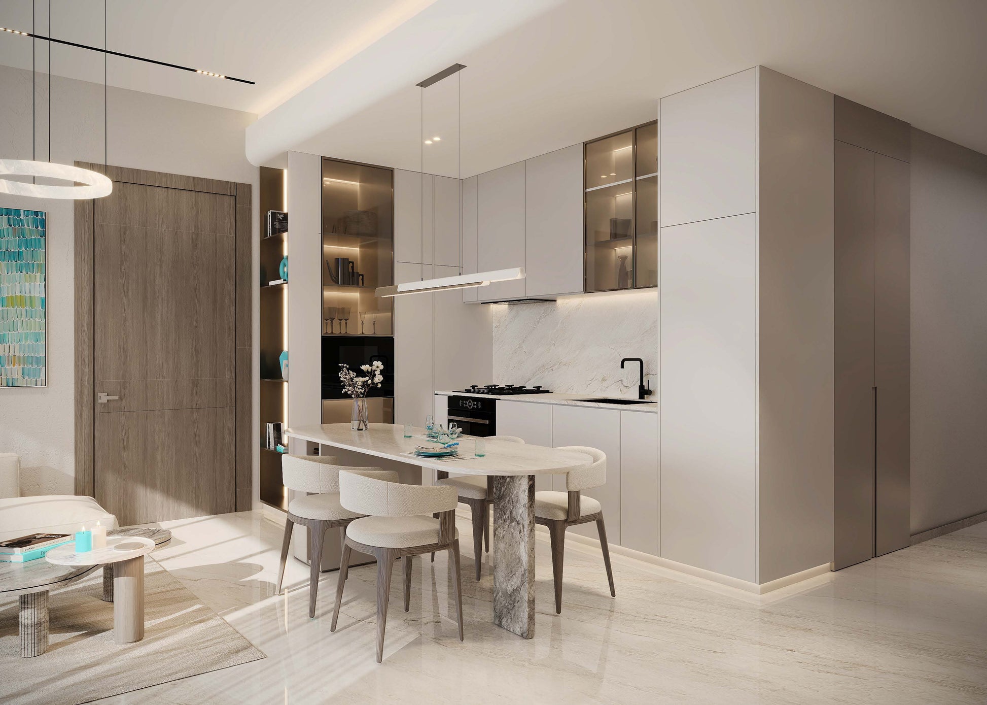 التشطيبات مختارة لتناسب الاستخدام الحقيقي، مع مطابخ مجهزة بأجهزة أساسية، ومساحات معيشة واضحة تسهل التأثيث والاستغلال. هذا النوع من التصميم مطلوب في السوق الإيجاري في دبي ويُفضل من قبل العائلات والموظفين.